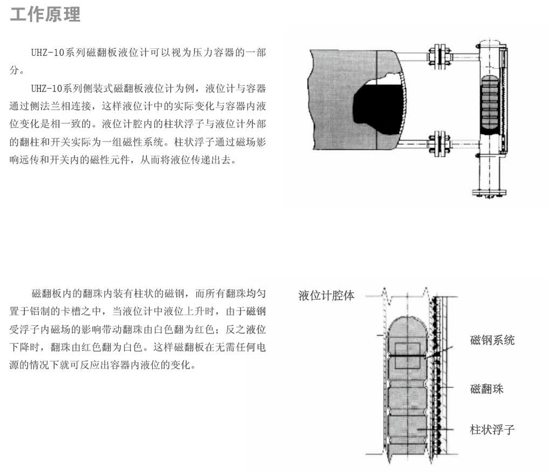 UHZ-10系列磁翻板液位計是北京金德創(chuàng)業(yè)測控技術(shù)有限公司在優(yōu)化國外同類液位計,結(jié)合本公司此類液 位計長期銷售中取得的經(jīng)驗的基礎(chǔ)上,依照化工工業(yè)部標準HG/T21584-95開發(fā)、研制出的新產(chǎn)品。