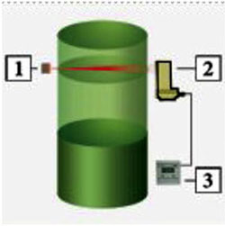 | 工作原理:放射源與檢測器組件被放置于受測控容器的兩側(cè) (根據(jù)直徑和倉體壁厚確定)在受控原料高度變化時,由于射線遮擋情況變化, 所以檢測器檢測到的伽馬放射線的量也會發(fā)生變化從而變送器根據(jù)檢測器的信號輸出高低報警信號。 |
